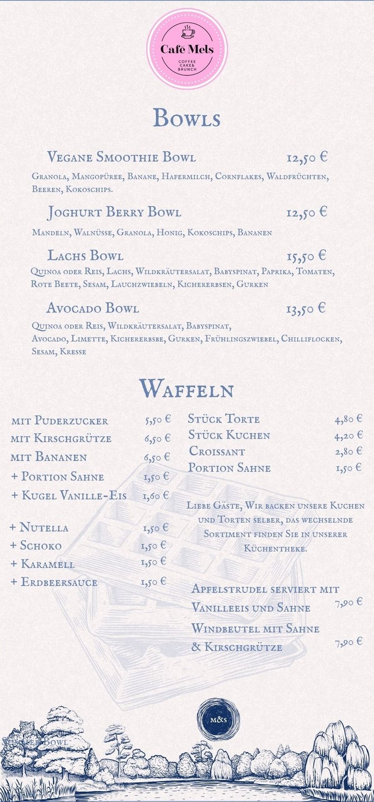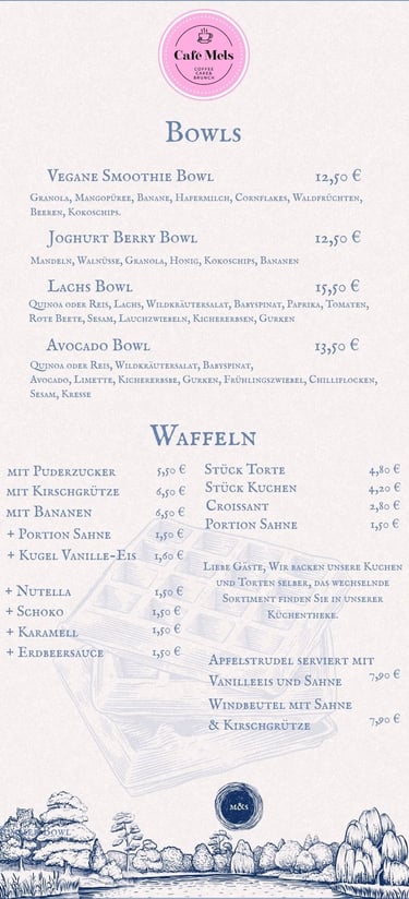 Reservieren Sie jetzt Ihr Frühstück, Kuchen, Kaffee und gesunde Getränke und genießen Sie es!